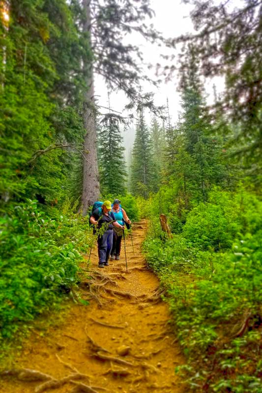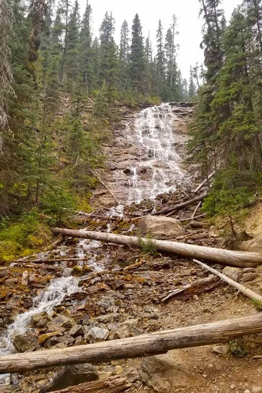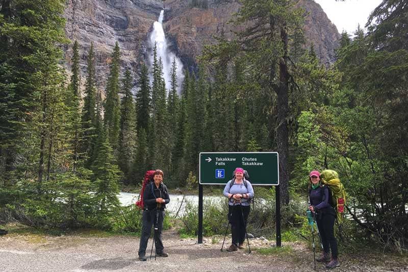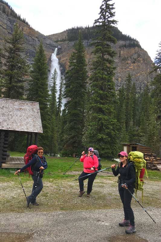 Day 2:Our first day is a tour of 5 waterfalls! After setting up a car shuttle we will arrive at the parking with an immediate spectacular view of Takakkaw Falls, the second tallest waterfall in Canada, rising over 350m in the air. From here we’ll follow our trail through pockets of temperate rainforest, enjoying breaks at Laughing Falls, Point of Lace Falls and Angel’s Staircase Falls. Tonight’s camp is near the base of our final waterfall of the day, Twin Falls. The roar of the river will be our backdrop and lull us to sleep after a well-deserved gourmet meal – 7.2km 150m.