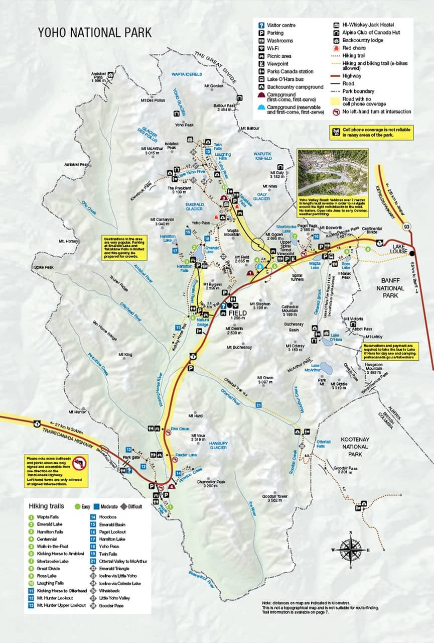 Day 3:Day 2 - We are quickly rewarded with up close views of Twin Falls. These falls are unique with two channels of rushing water that fall side by side before crashing into the river below. Continuing upwards, the trail gets steeper as we hike around to the top of the falls. Reaching the height fo our day we cross an exhilarating suspension bridge and take in 360-degree views of glaciers and alpine peaks before dropping down to the valley floor and our campsite at Little Yoho Campground. After another delicious meal, we’ll drift to sleep in anticipation for our next day of outstanding alpine scenery - 10.4km 745m.