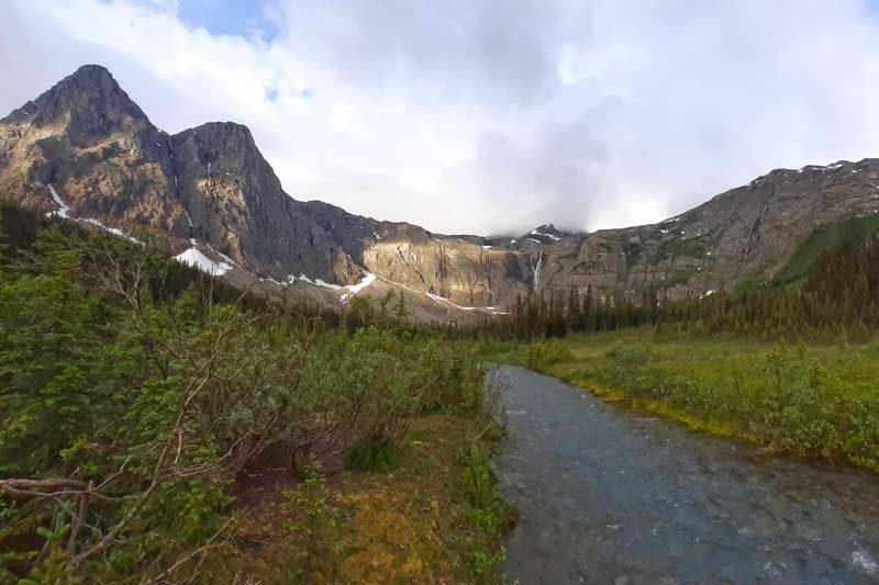 Day 3:Enjoy your morning coffee, pack your bag, and lace up your boots. Today we will get our first glimpse of the mind-blowing Rockwall and it's hanging glaciers. We will Take time to enjoy the views from Rockwall pass and learn about the surrounding area. We will spend the night at Tumbling Creek - 12 km, 475m elevation gain, 350m elevation loss.