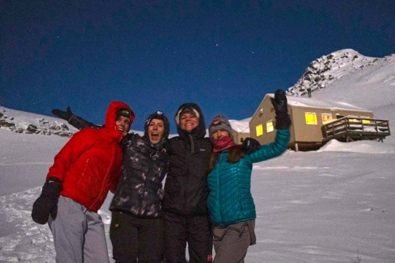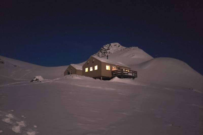 Day 2:We'll wake up full of energy and carpool to the trailhead. Here your guide will review how to use your avalanche beacon, shovel, and probe and run the group through some fun exercises. After bundling up against the elements we will set out on our snowshoes for the hut. Once there we will grab bunks (6 people on one level) for us to sleep on and enjoy heat radiating from the wood burning stove. A three course meal will be prepared as we relax into the evening.