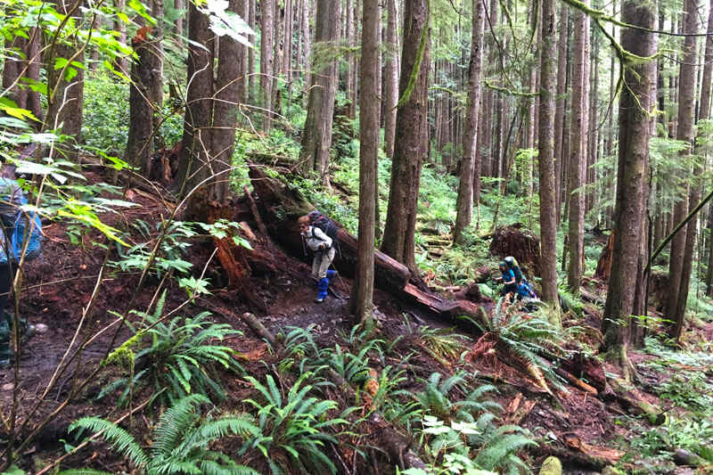 Day 5:So cool! Today is the quintessential West Coast Trail. Often whales can be seen in the distance as we hike along the sandstone shelves. If you're nervous about food, today is your day! Grab a seat and enjoy deliciously large burgers at Chez Moniques. We will also pass Carmanah Lighthouse where the Pacific Ocean meets the Strait of Juan de Fuca. It is a great location for watching sea lions! With full bellies we will waddle into Cribs Creek for the night - 11km.