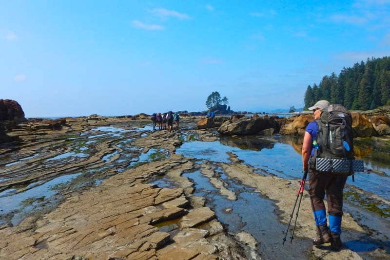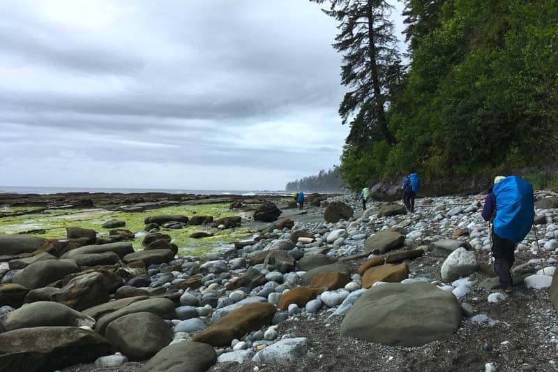 Day 3:Coffee delivered to your door?! What else could you want? After a delicious breakfast we will start our most challenging day. Crawling over boulders, driftwood, and negotiating surge channels are the theme for the day. We chose hiking dates that allow us to hike along the beach for this section so we can enjoy the famous Owen's Point. Although challenging, you will love the views. Campers Bay will be where we will lay our heads for the night - 8km.