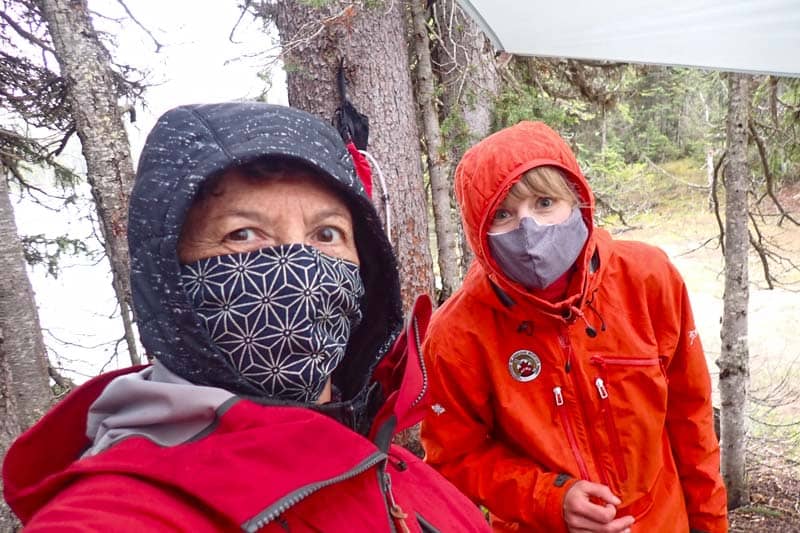 Tarp:If the weather is fowl and maintaining a 2-meter distance is not possible under the tarp masks are good to wear. During meal times find a tree to hind under while you eat. Once your mask goes back on, huddle under the tarp again.