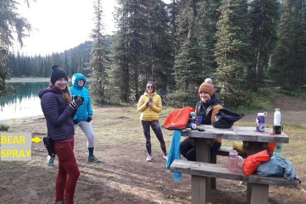Keep your bear spray handy when cooking, washing, or hanging out around camp. A pro tip is to wear the holster on your belt so it’s with you even when you set your pack down.