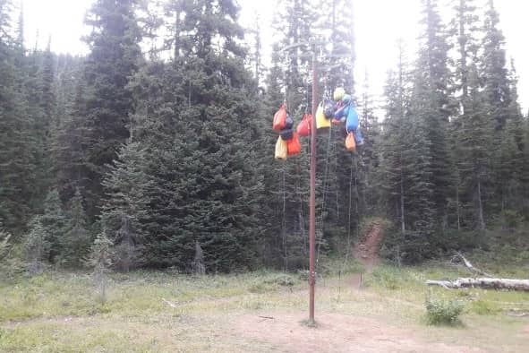 Bear hangs should be 4m off the ground, and 2m away from trees and branches