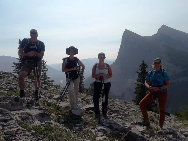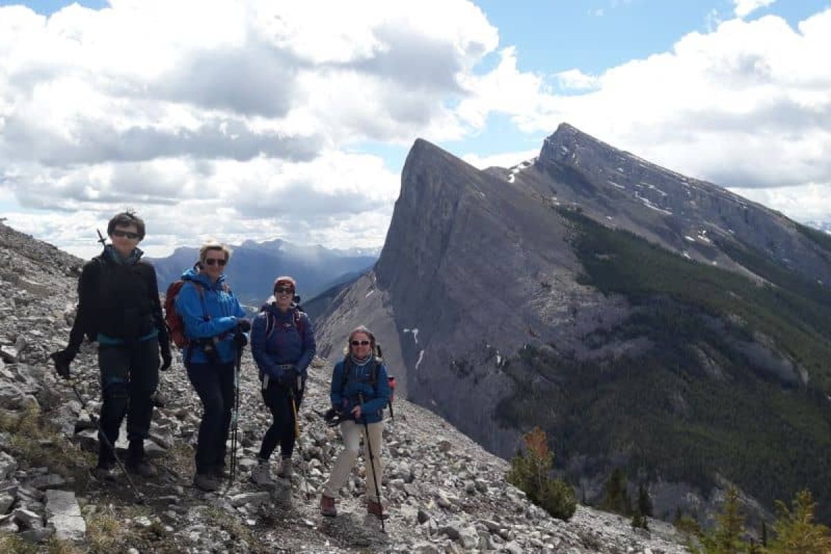 Speaking of rock climbing, there are many climbing routes that go up the cliff on the East face of Rundle, so we were careful to not knock rocks down off the ridge and onto others.