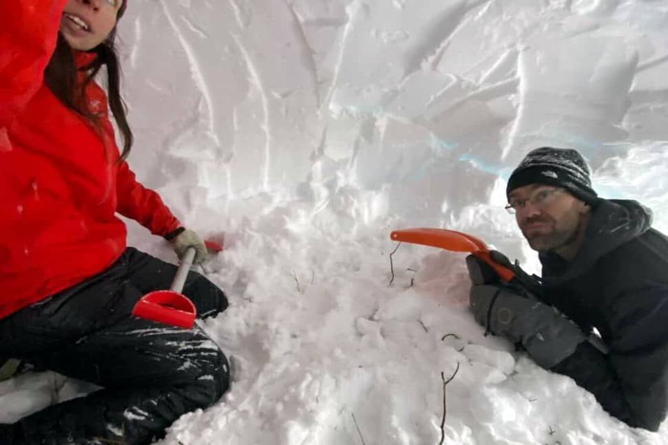 QuinzheeIf you don’t have a deep enough snowbank for a cave, you can make one! Pile up snow, while regularly tramping down the snow with your snowshoes. Once you have a good size snowpile, let it sit for at least 2 hours for the snow to settle. Then dig it out in the same manner as the snow cave.