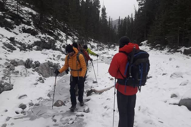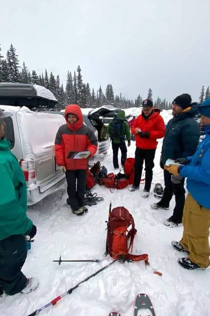 The main tool hiking guides have to manage the risk of avalanches is to simply avoid avalanche terrain. This can make planning a snowshoe trip challenging in the Canadian Rockies, because in the mountains 90% of the summer trails are threatened by avalanche. We learned about resources to assess avalanche hazard. These resources are invaluable for trip planning, allowing us to choose a route avoiding being on or under any slopes steep enough to slide.