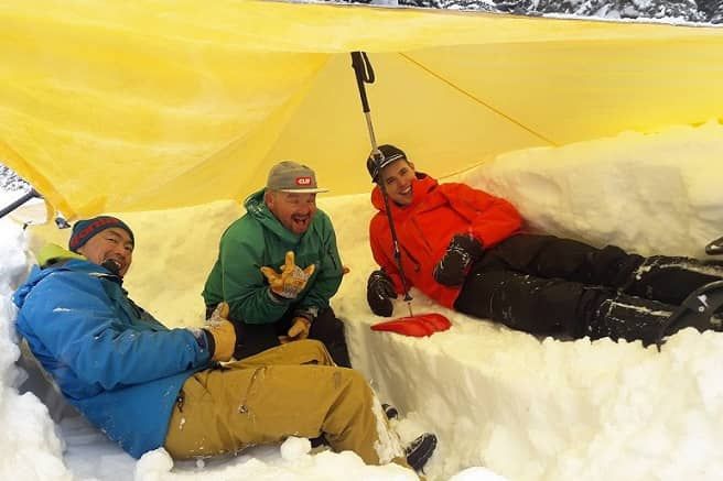 Quick ShelterIf there isn’t a lot of snow, or you don’t have much time, you can dig out a partial shelter space in the snow and use the tarp as a roof. These are best for short term shelters, because you will be fiddling with the tarp the entire time you are in your shelter.