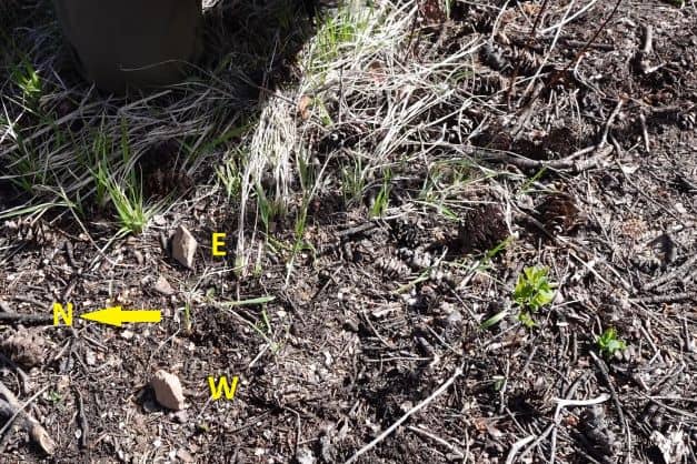 - Put a rock at the tip of the stick’s shadow to mark its location. This is the West rock.