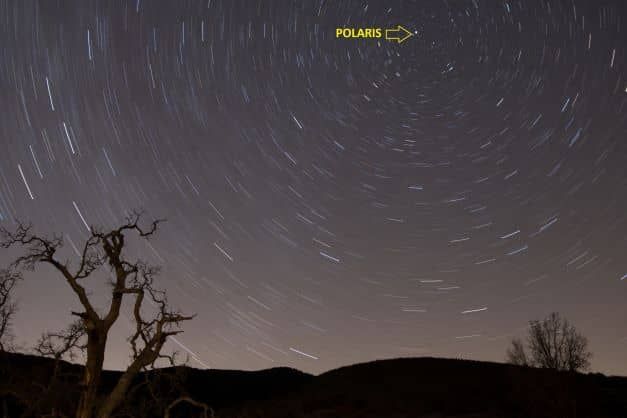 In the Northern Hemisphere, Polaris (also known as the North Star), is visible in the night sky and points to the North. The Big Dipper and Little Dipper can help you find it. Join one of our Full Moon Hikes to learn more about the stars!