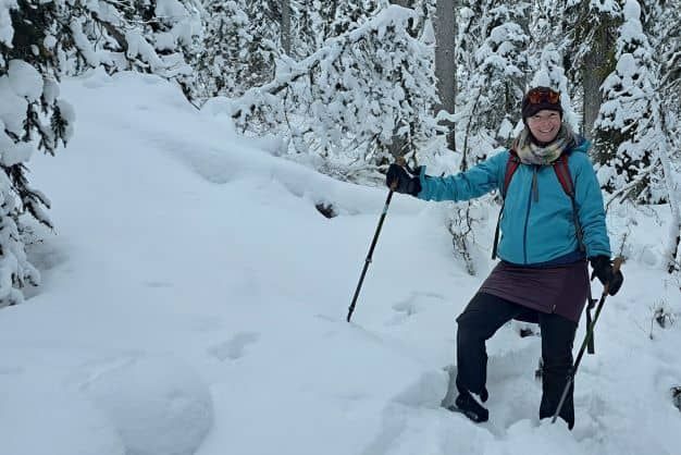 "A lot of people find their bums get cold in winter. An insulated skirt is a great way to easily add or remove layers on their bottom half without needing to take off boots or snowshoes"