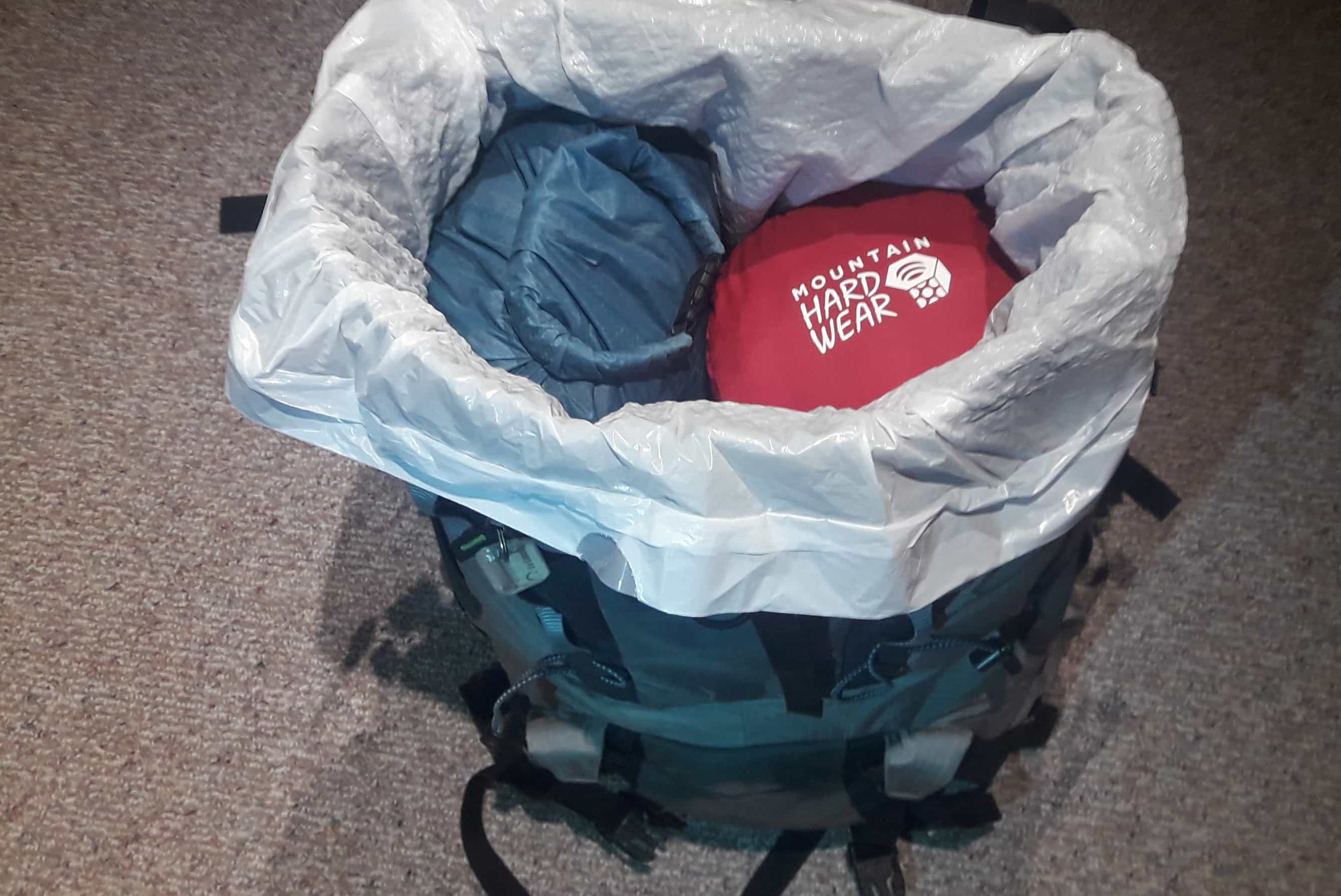This is a key goal when hiking in wet conditions. You want to keep your sleeping bag and clothes as dry as you can. This means at least two layers of protection from water, and critical items get an extra layer.
