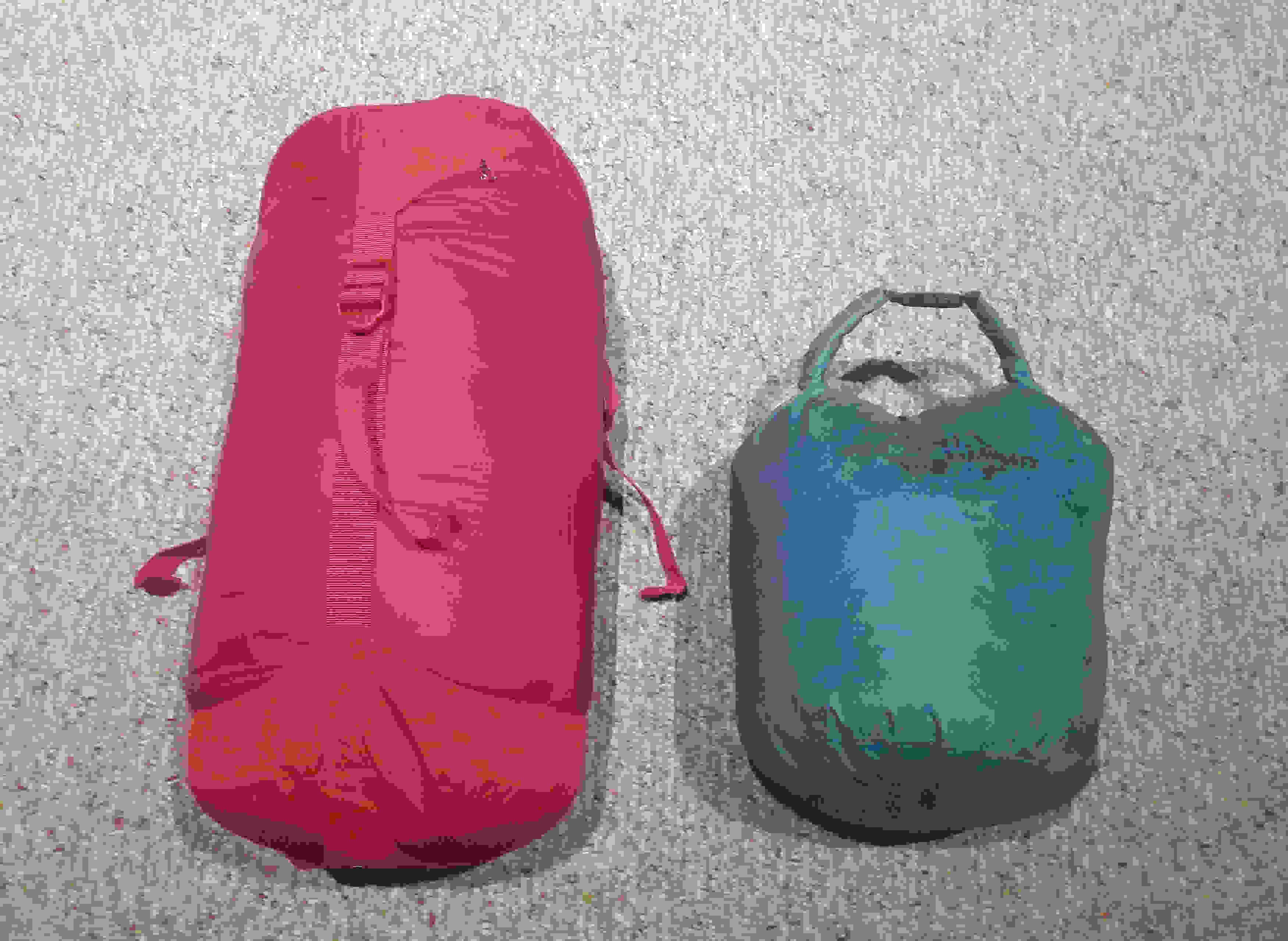 The most critical items should have a dedicated layer of protection: put your sleeping bag and dry clothing in water resistant stuff sacks or compression sac.